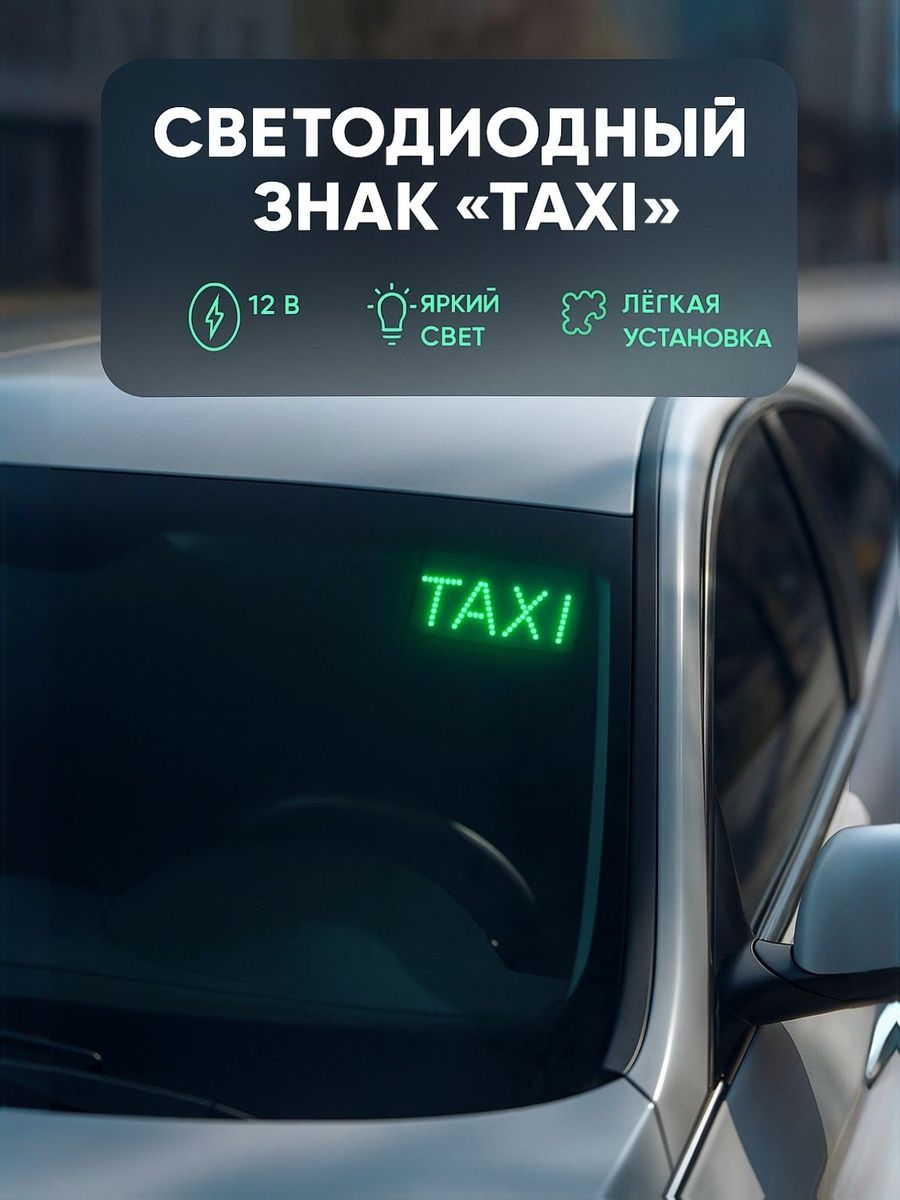 Знак автомобильный / Светодиодный знак ТАКСИ 12 В, 45 LED, 13х6 см, провод 150 см, зеленый