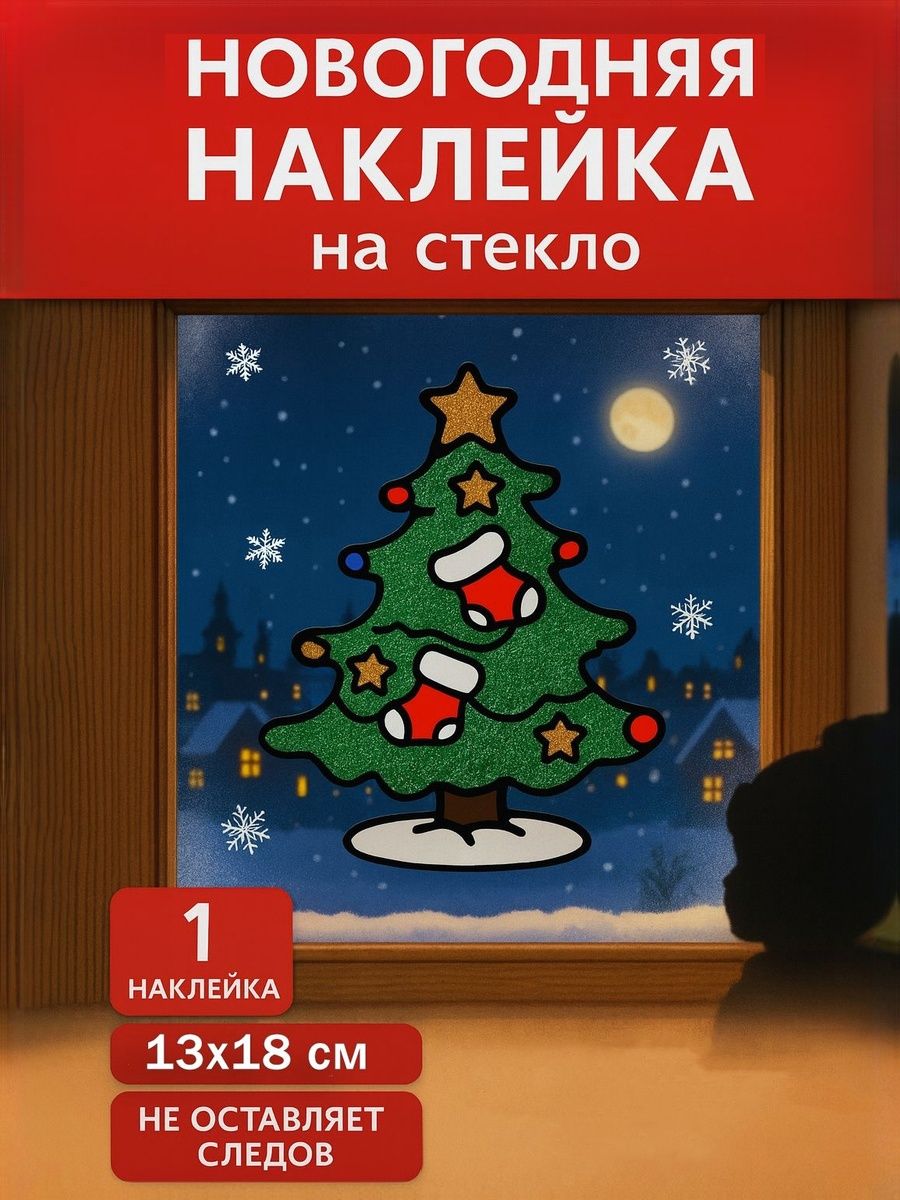 Новогодняя оконная наклейка Ёлочка с носочками 1318 см, украшение окна
