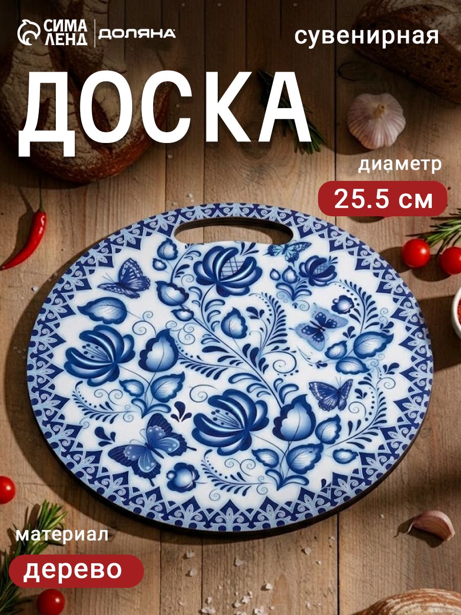 Доска разделочная и сервировочная круглая кухонная, 25,5 см