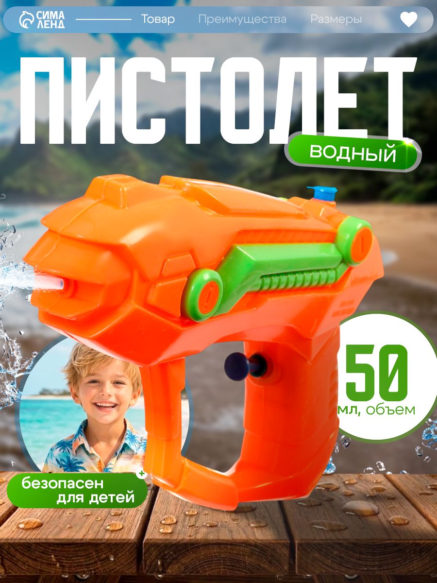 Водный пистолет / "Дружелюбный динозавр" / с накачкой, 35 см.