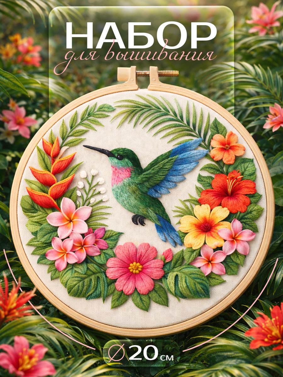 Набор для вышивания гладью 20х20 см / набор для творчества / "Вдохновение природы"