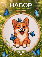 Набор для вышивания крестиком, 16х18 см, "Милый корги", набор для вышивания для детей, творчество для детей