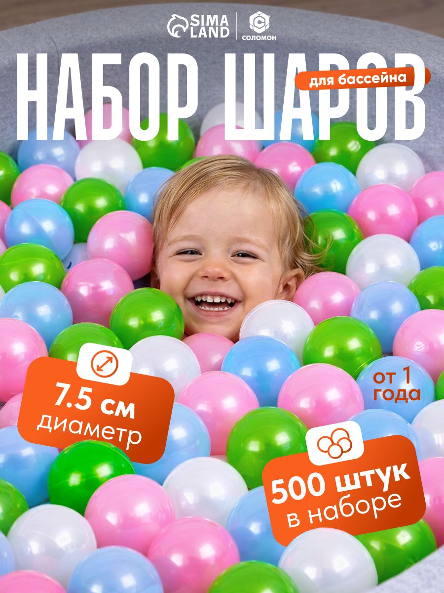 Шарики для сухого бассейна / Шары для сухого бассейна / Перламутровые, диаметр 7.5 см, набор 500 штук