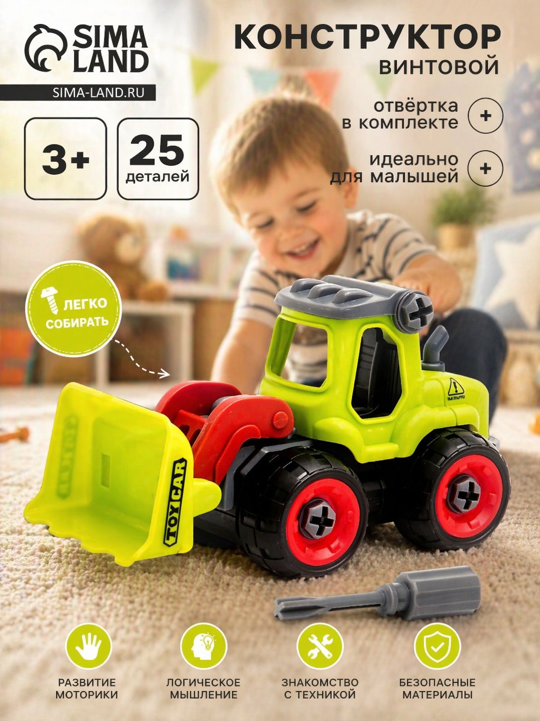 Конструктор винтовой с отверткой "Фермерский погрузчик", 25 деталей, конструктор для малышей