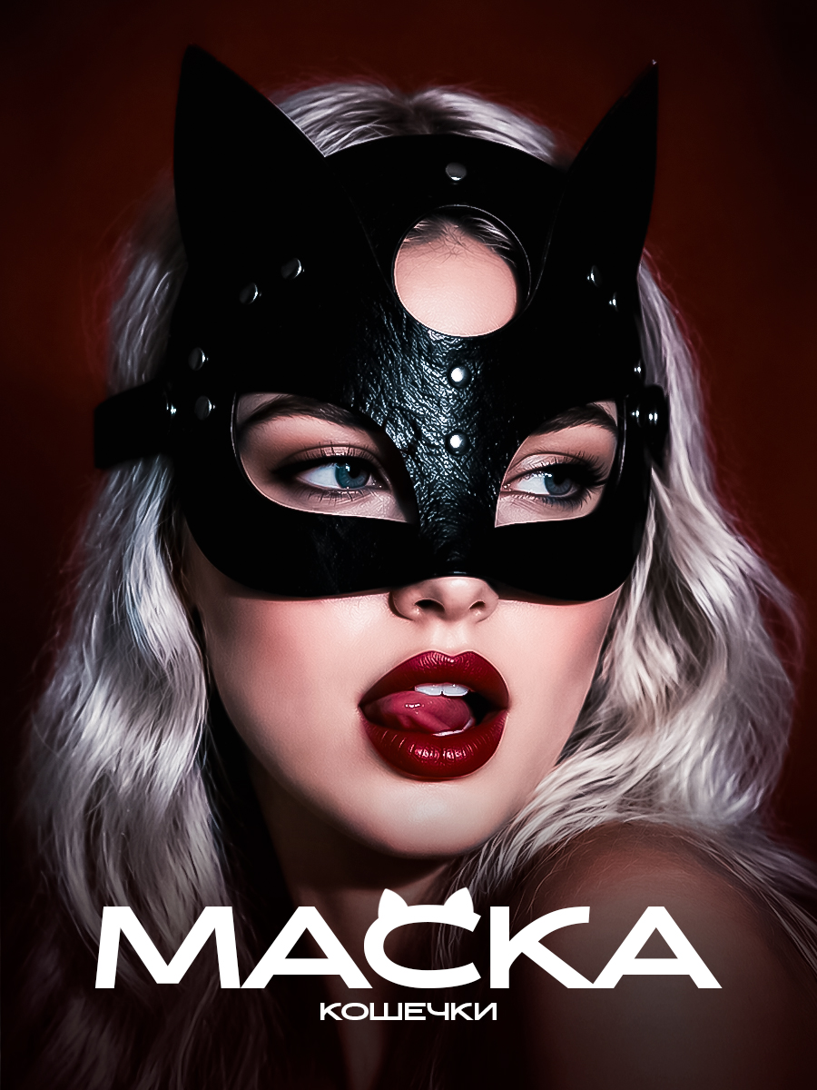 Маска карнавальная кожаная Кошка / Маска кошки, цвет чёрный