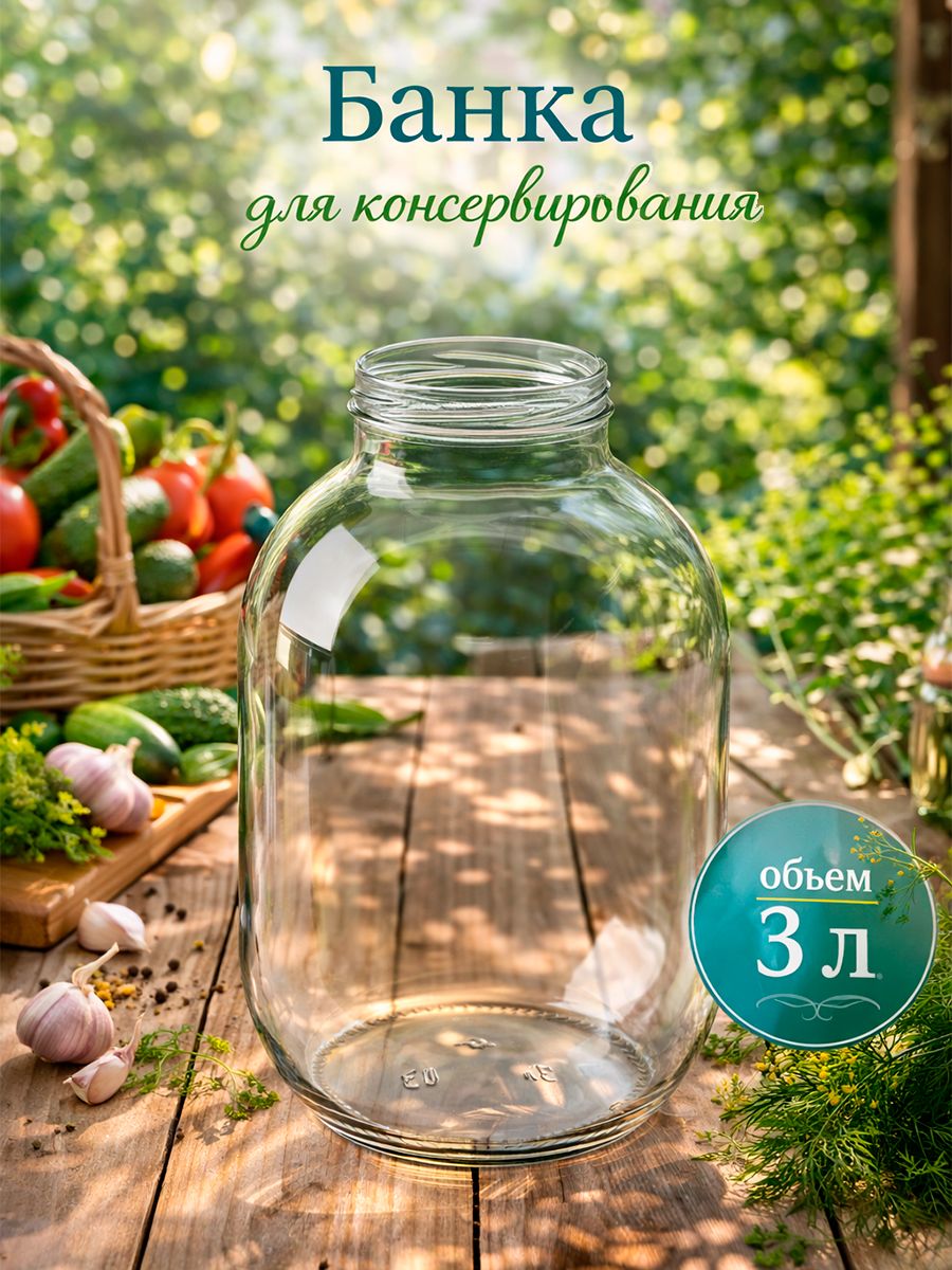 Банка стеклянная для консервации, объем 3 л, ТО-82 мм