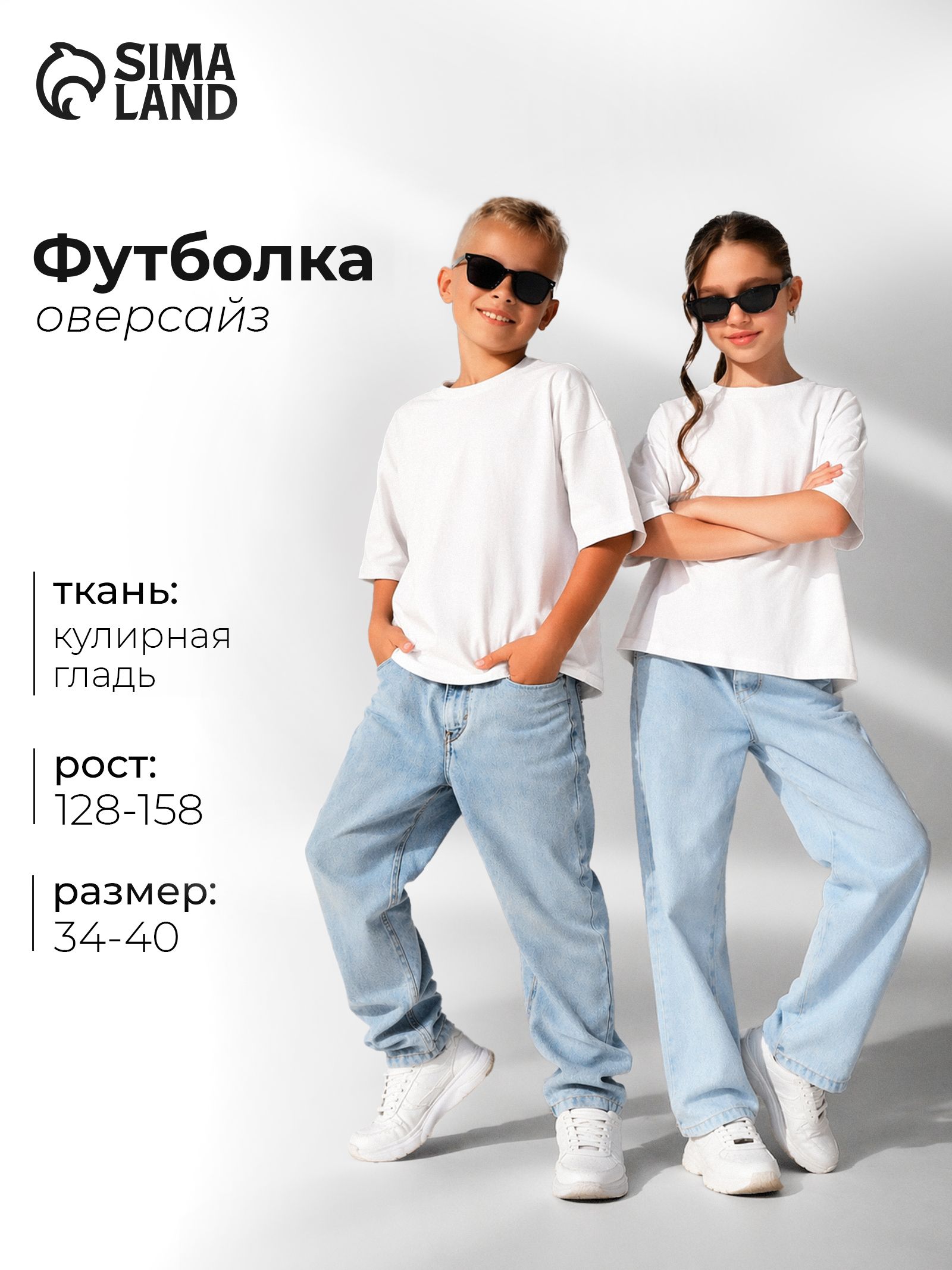 Футболка детская оверсайз для мальчиков,для девочек, MINAKU, однотонная, белая, рост 128 см