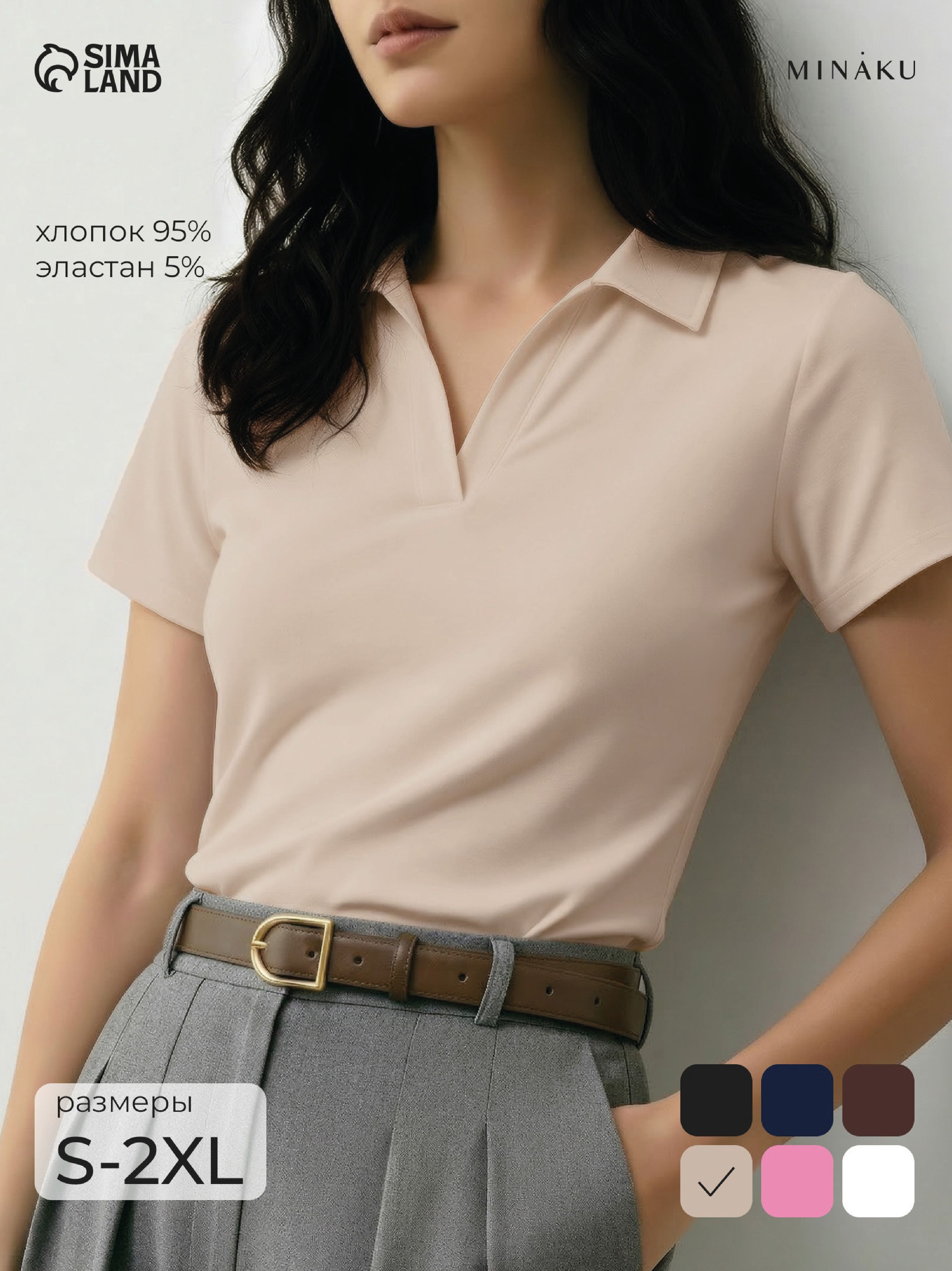 Футболка - поло женская MINAKU, размер 42-44 (S), интерлок, бежевая