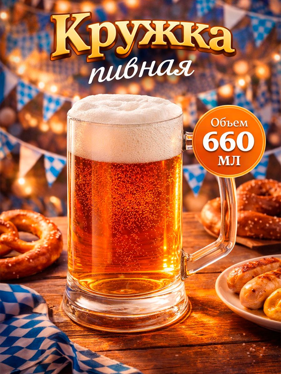 Пивная кружка Pub, объем 660 мл, стекло, прозрачная