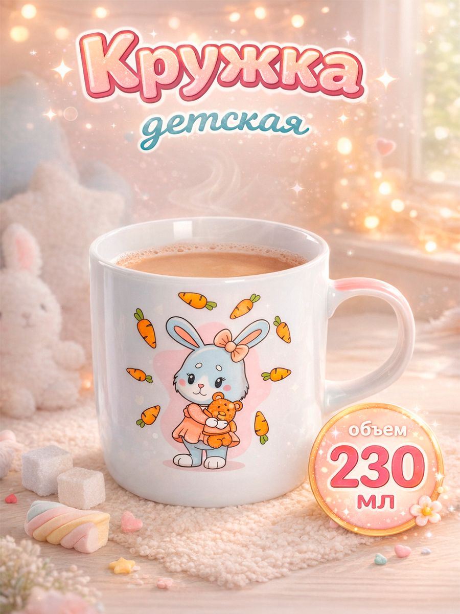 Кружка детская керамическая Доляна "Лапочка зайка", 230 мл, цвет белый