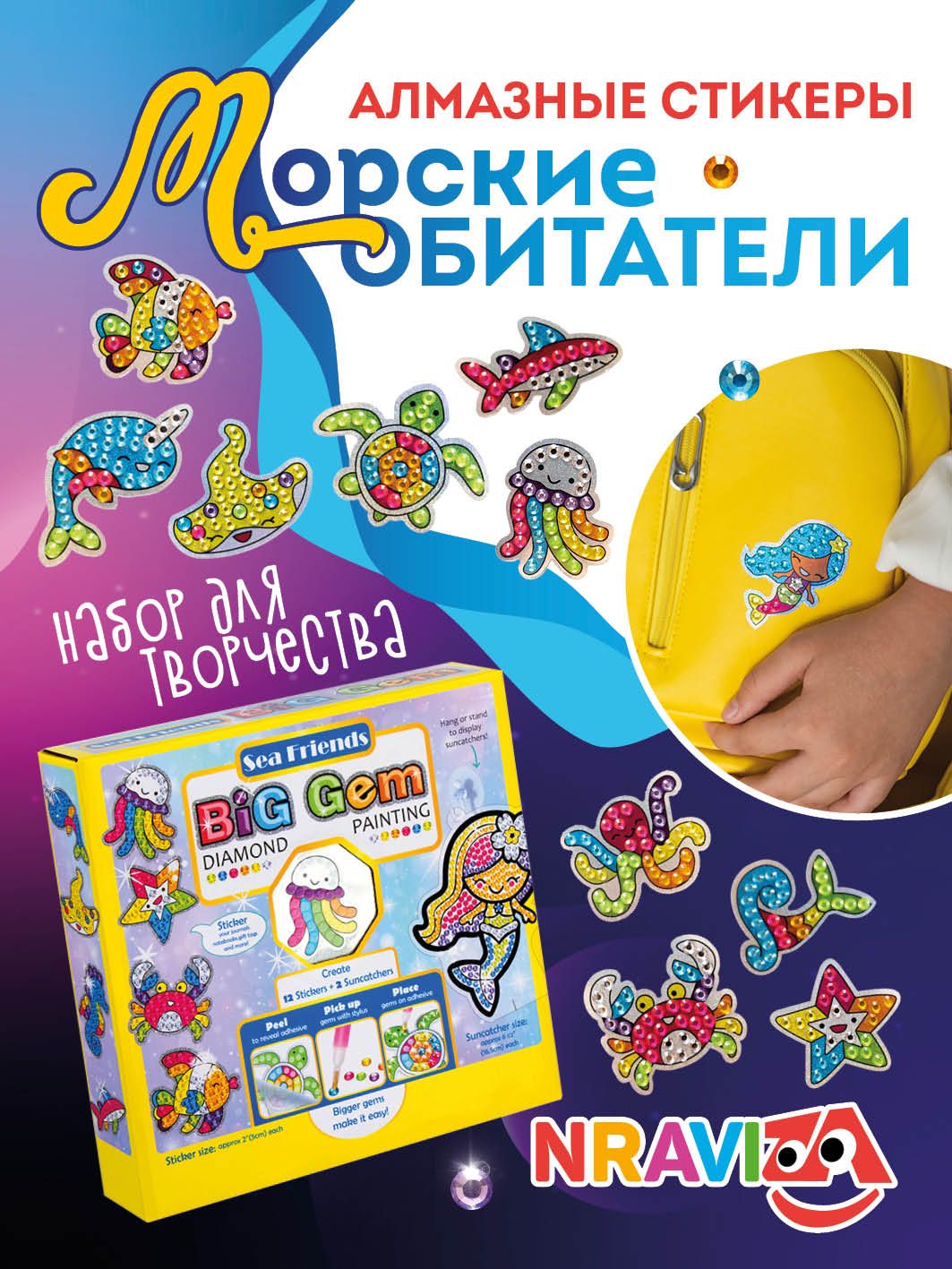 Алмазная мозаика "Морские обитатели", Наклейки развивающие для детей, Набор для творчества и рукоделия для девочек, Подарок для девочки