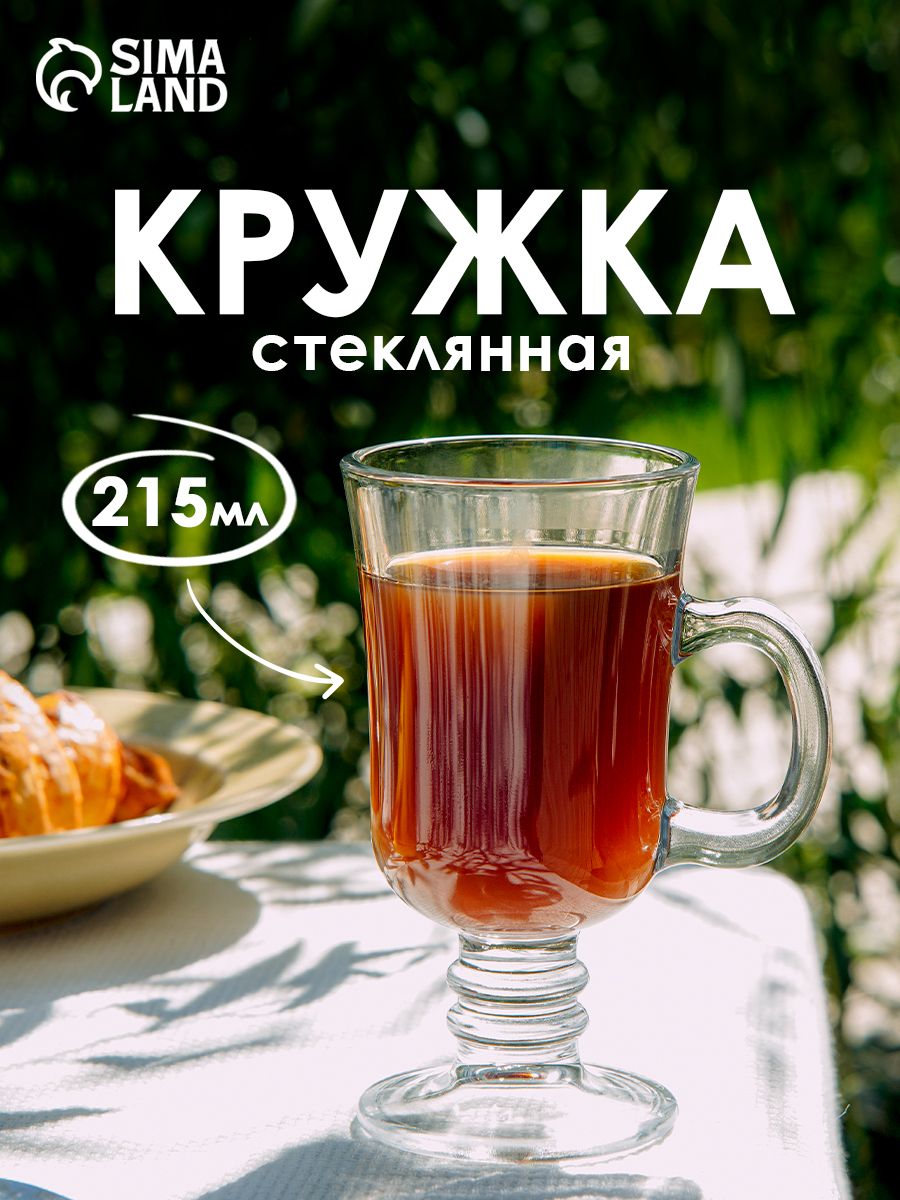 Кружка стеклянная, объем 215 мл, прозрачная, для кофе