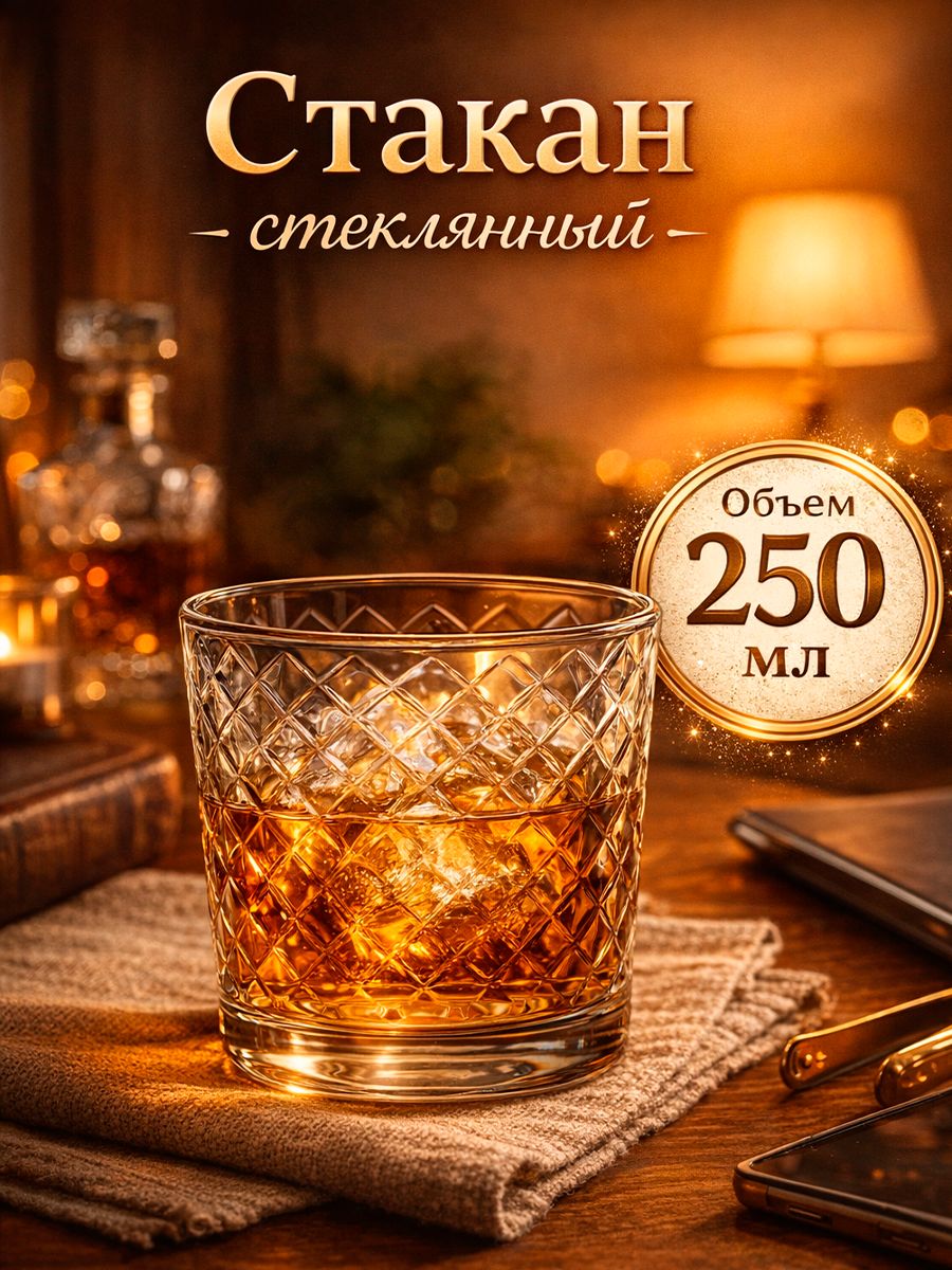 Стакан стеклянный "Кристалл", объем 250 мл, прозрачный