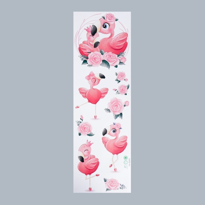 Наклейка пластик интерьерная цветная "Малыши-фламинго - балет" 30х90 см
