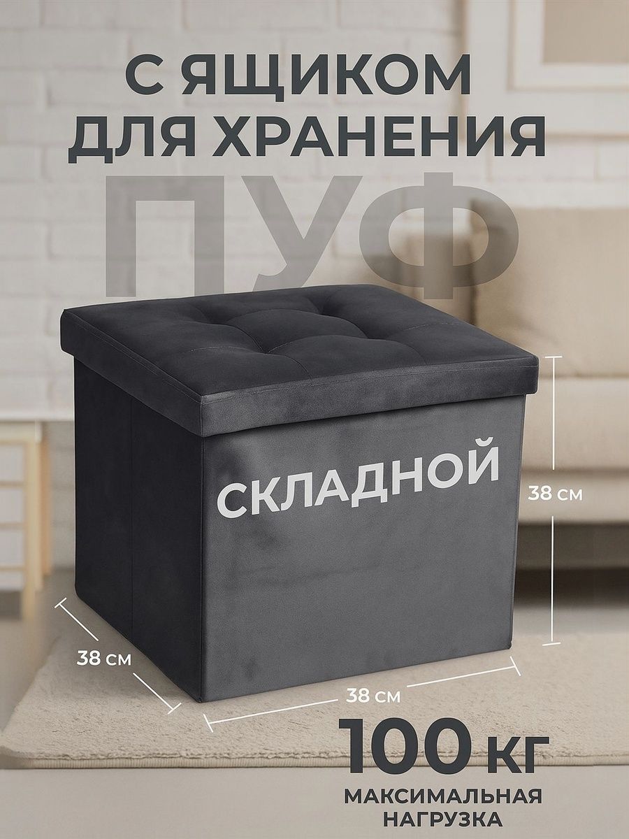 Пуфик в прихожую, 38х38х38 см, серый велюр