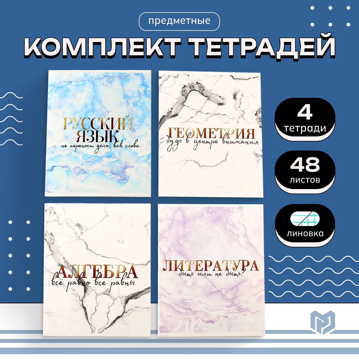 Тетради 48 листов А5, основные предметы, "Мрамор", 4 шт