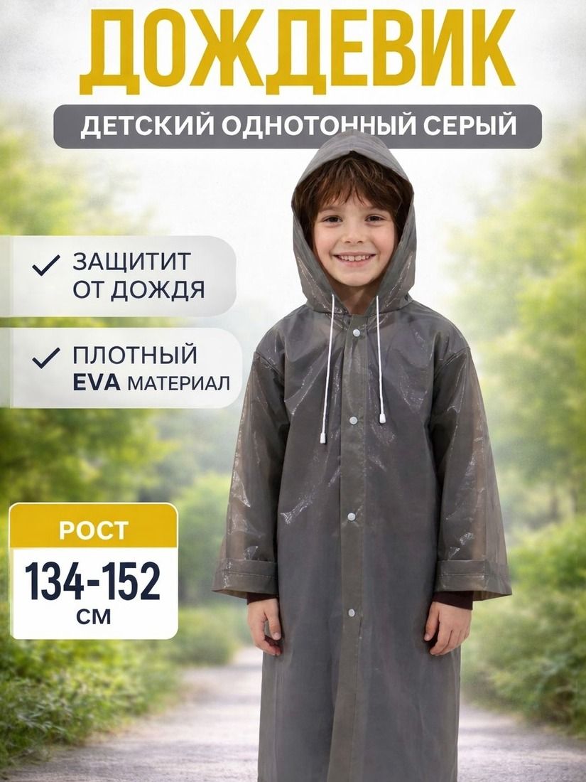 Детский дождевик серый однотонный для роста 134-152 см