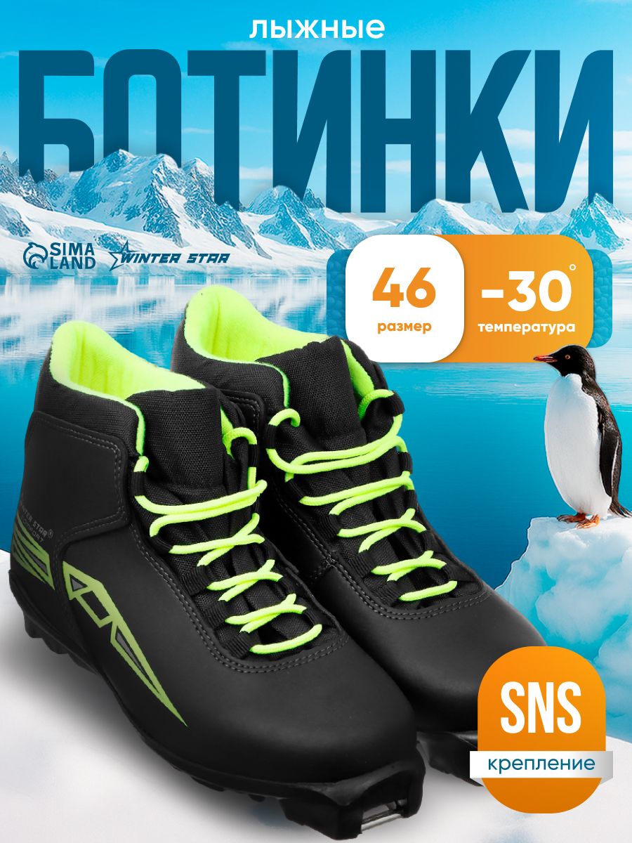 Лыжные ботинки Winter Star "comfort", SNS, размер 46, цвет черный, салатовый