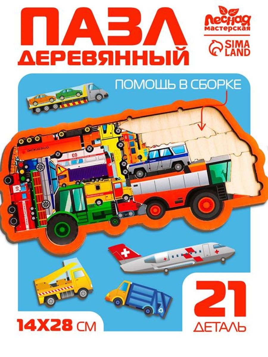 Головоломка рамка-вкладыш Лесная мастерская "Спецтранспорт" для детей и малышей, деревянная