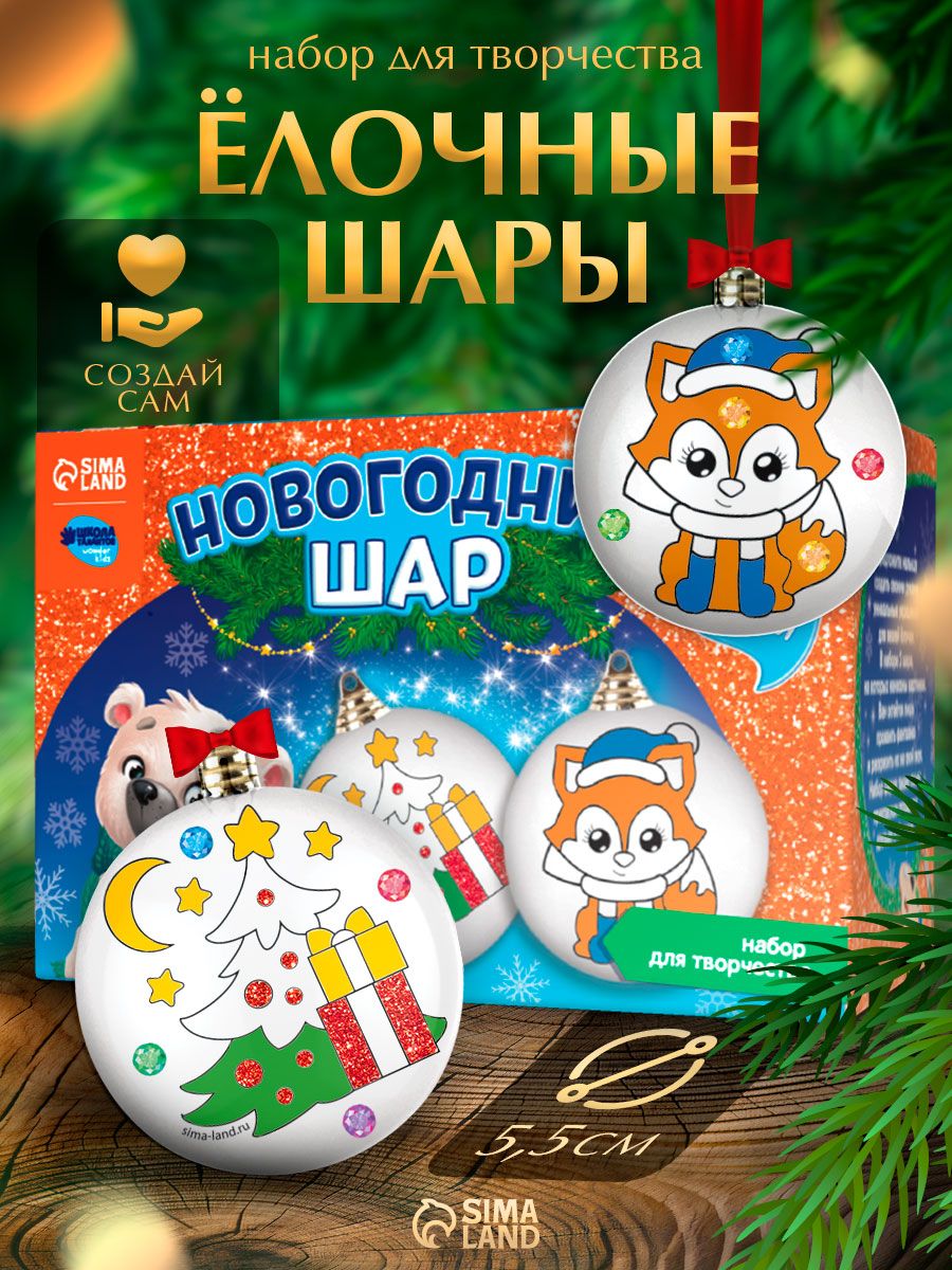 Елочные шары под раскраску, "Чудеса сбываются", набор 2 штуки, диаметр 5,5 см, новогодние подарки для детей