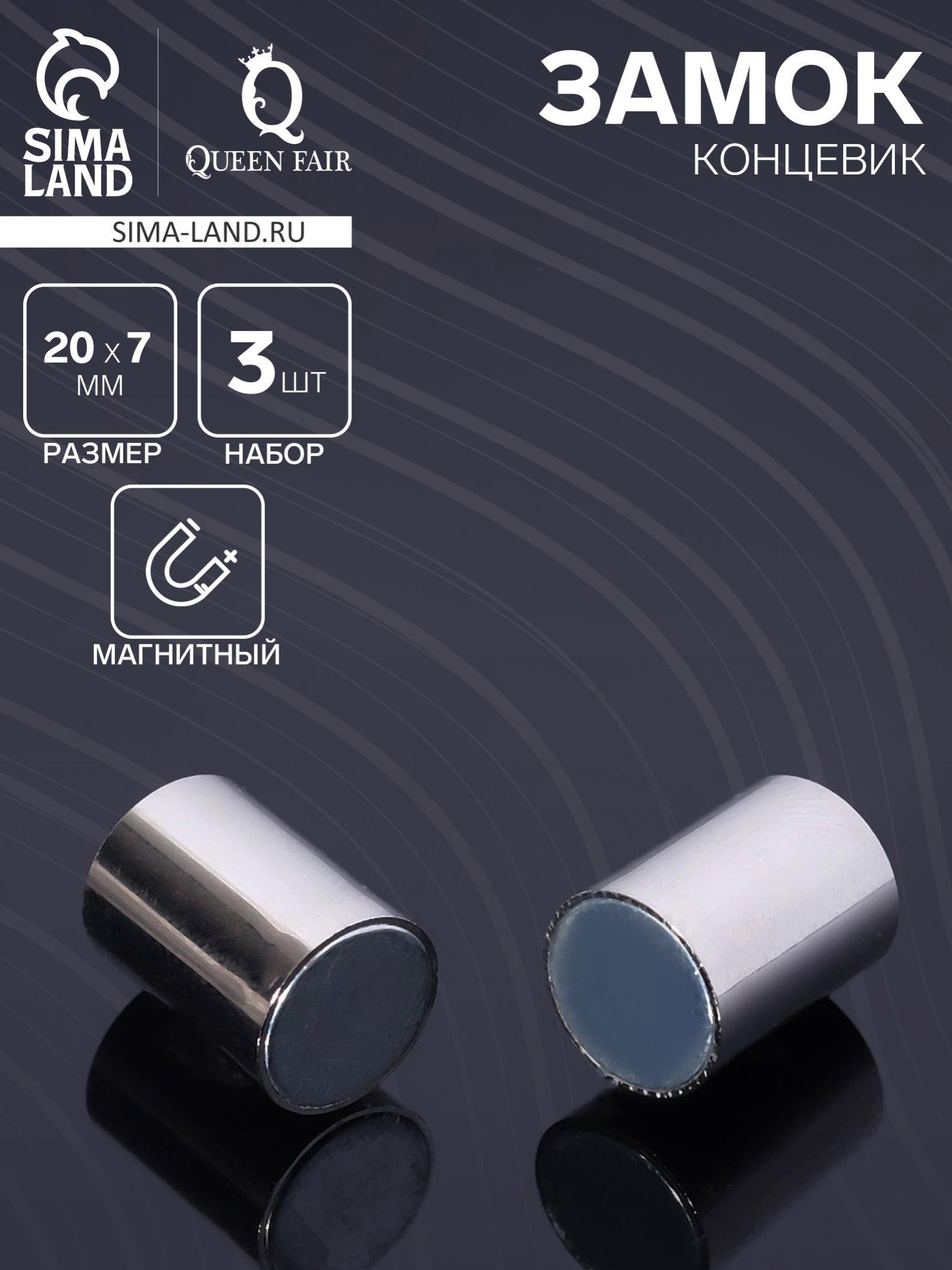 Замок-концевик Магнитный, набор 3 шт /L 20 мм, вн.d 7 мм / цвет серебро