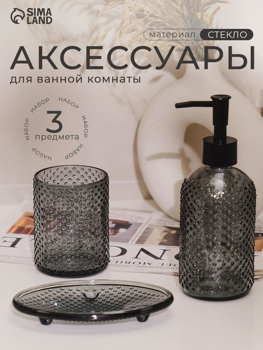 Набор для ванной комнаты аксессуаров "Капель", объем 250 мл, 3 предмета, дозатор для мыла, стакан, мыльница