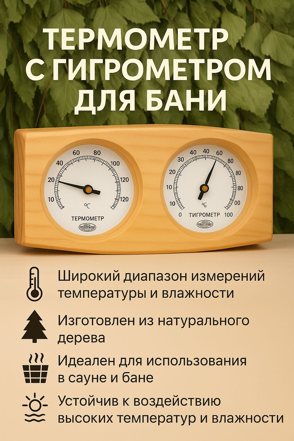 Термометр с гигрометром для бани и сауны Добропаровъ "Банная станция", 24,5х18,5 см