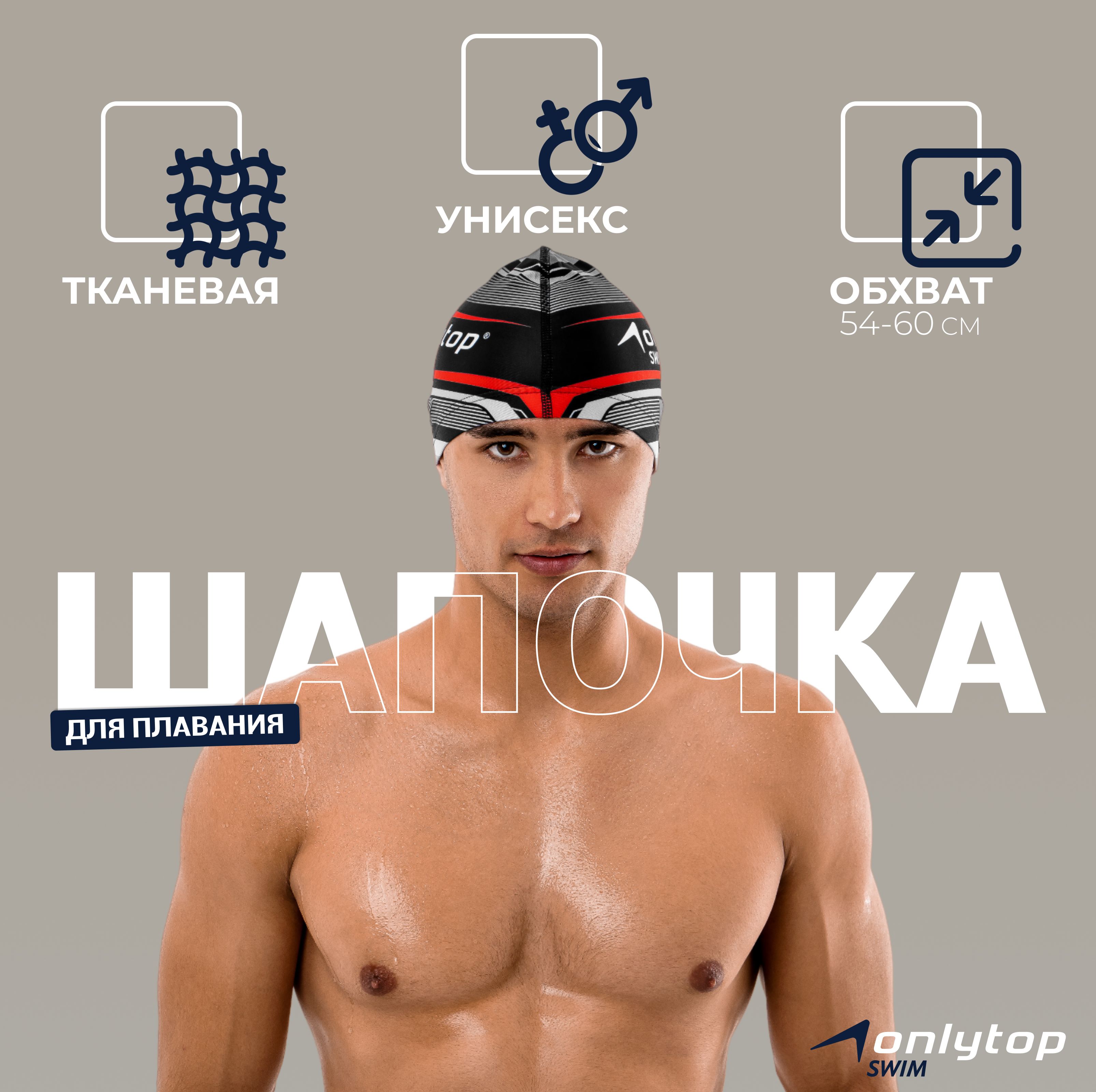 Шапочка для плавания для бассейна ONLYTOP, обхват головы 54-60 см.