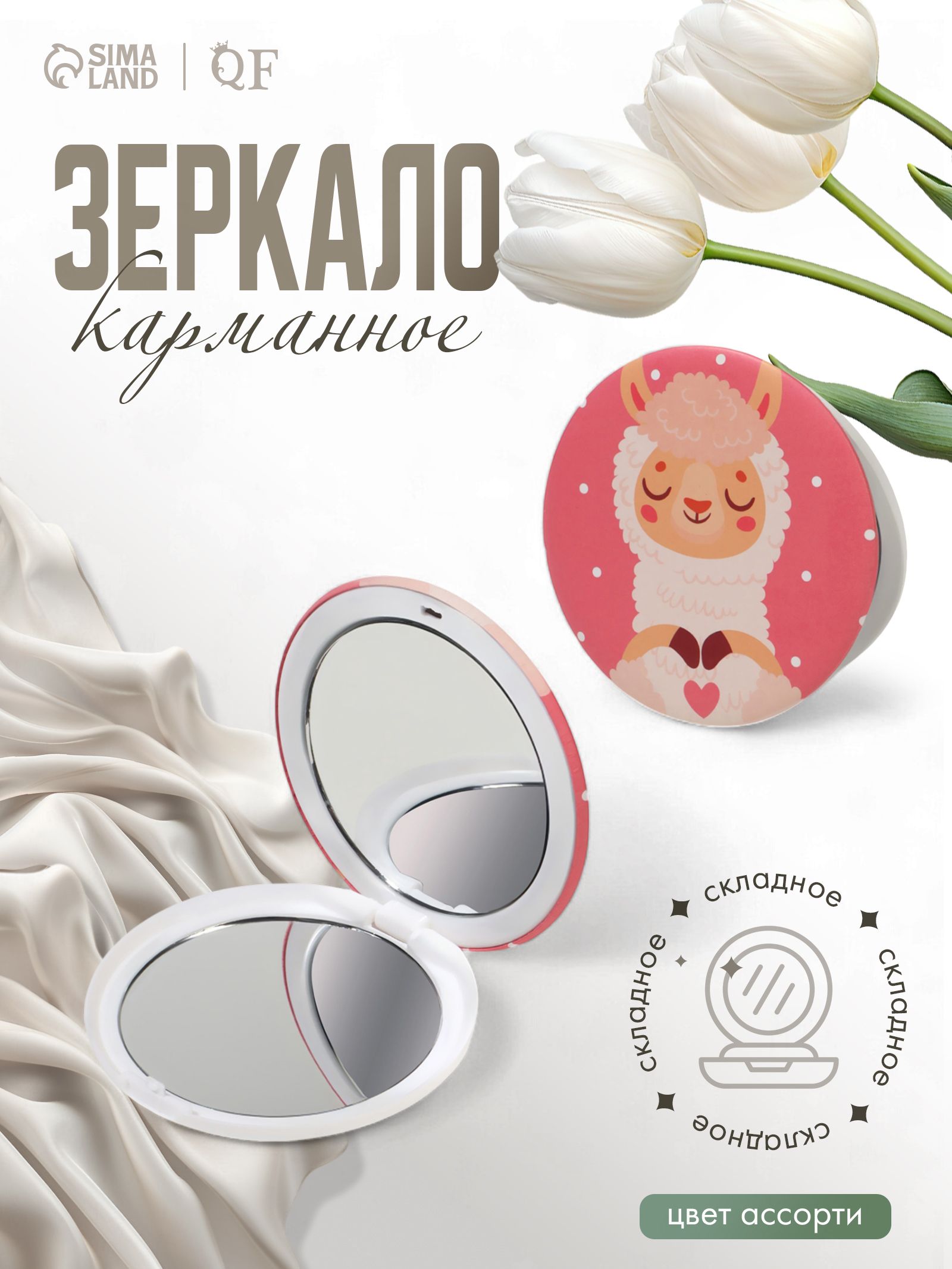 Зеркало складное "Ламы", d - 7,5 см, c увеличением, рисунок разноцветный