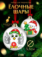 Елочные шары под раскраску, "Волшебный праздник", набор 2 штуки, 5.5 см, карандаши, новогодние подарки для детей