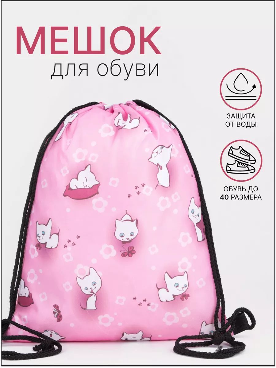 Мешок для обуви, школьный для девочки, розовый, с котятами / Текстиль
