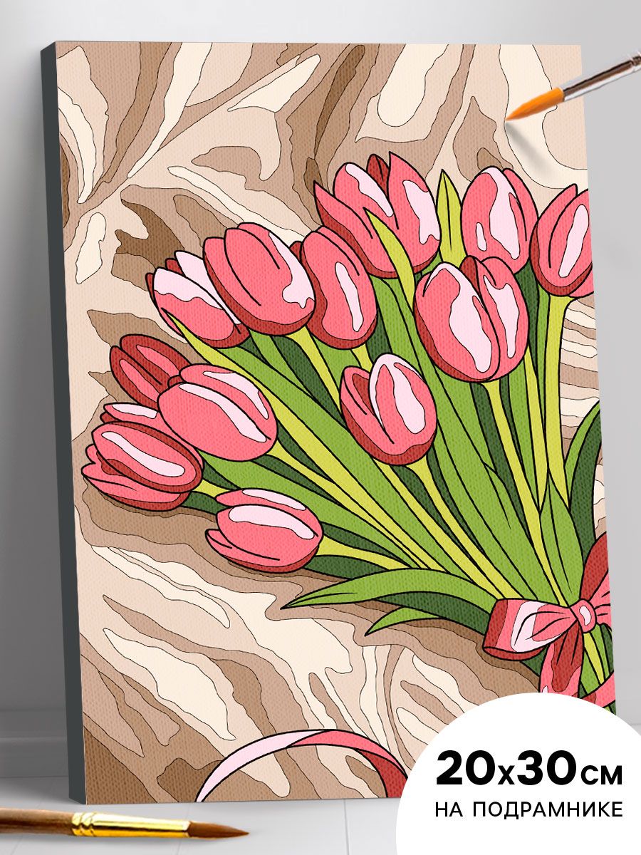 Картина по номерам, 20х30 см, на подрамнике / "Нежность тюльпанов"