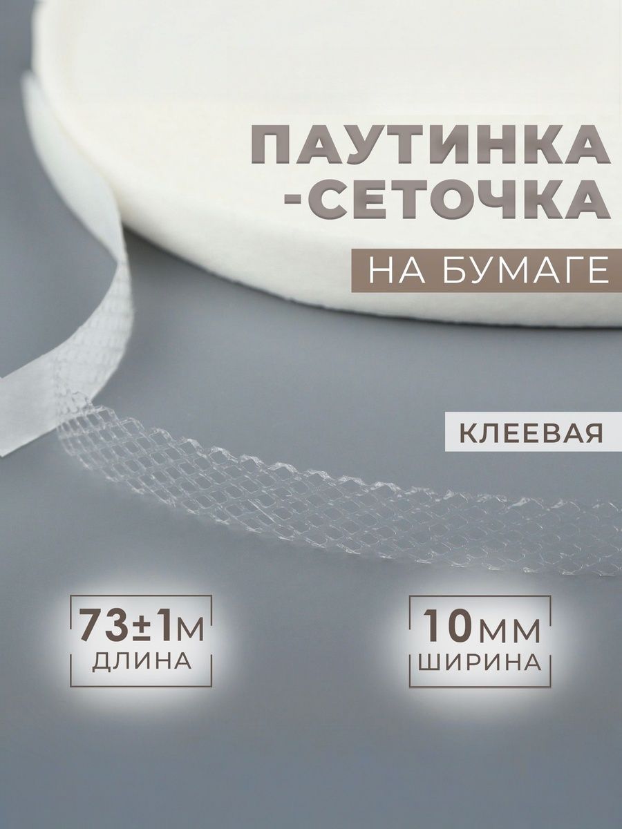 Паутинка клеевая для ткани, сеточка на бумаге, 1 см, 73 м