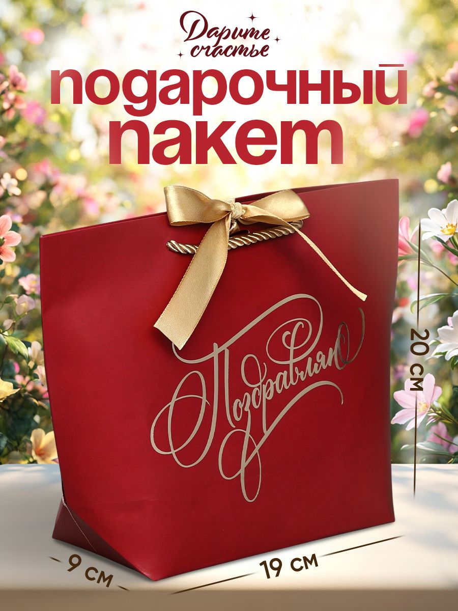 Пакет подарочный, 19 х 20 х 9 см