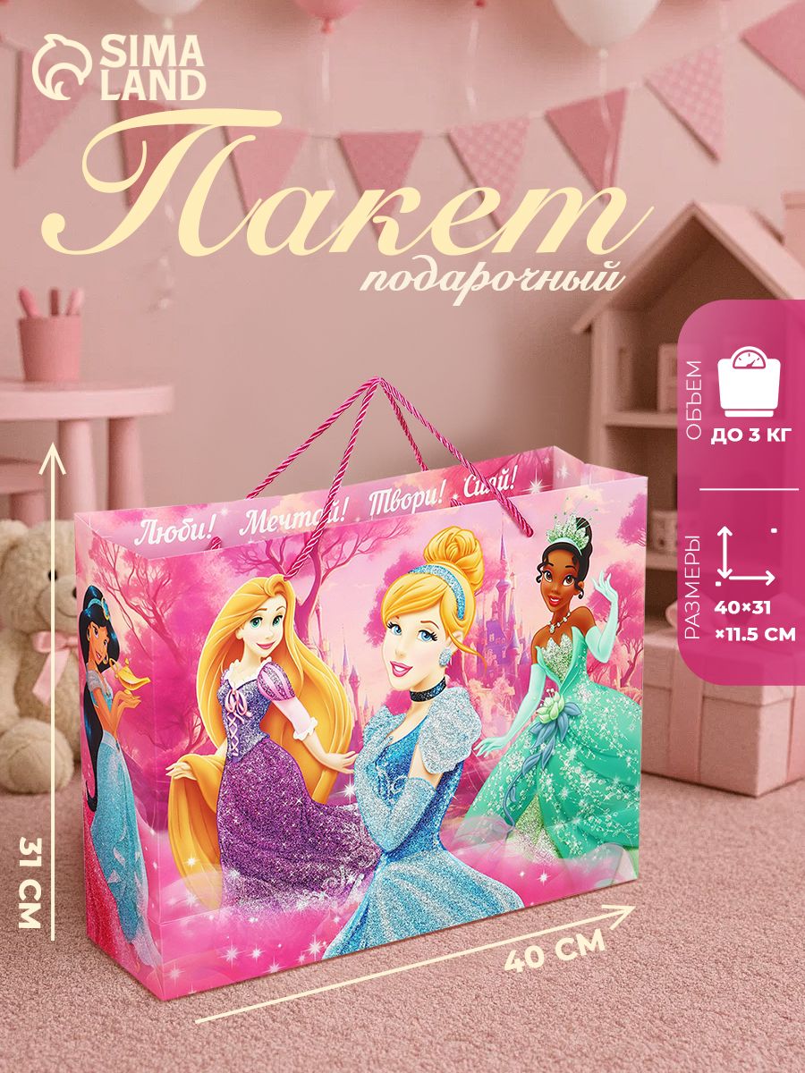Пакет подарочный большой, "Принцессы", 40 х 31 х 11,5 см