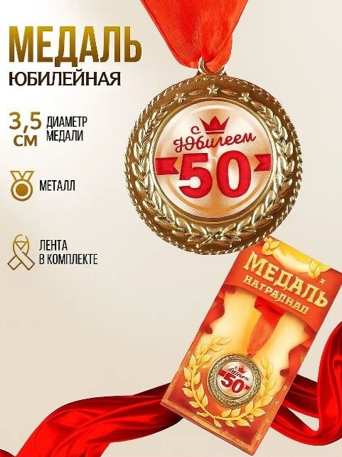 Медаль подарочная сувенирная "С юбилеем 50 лет"