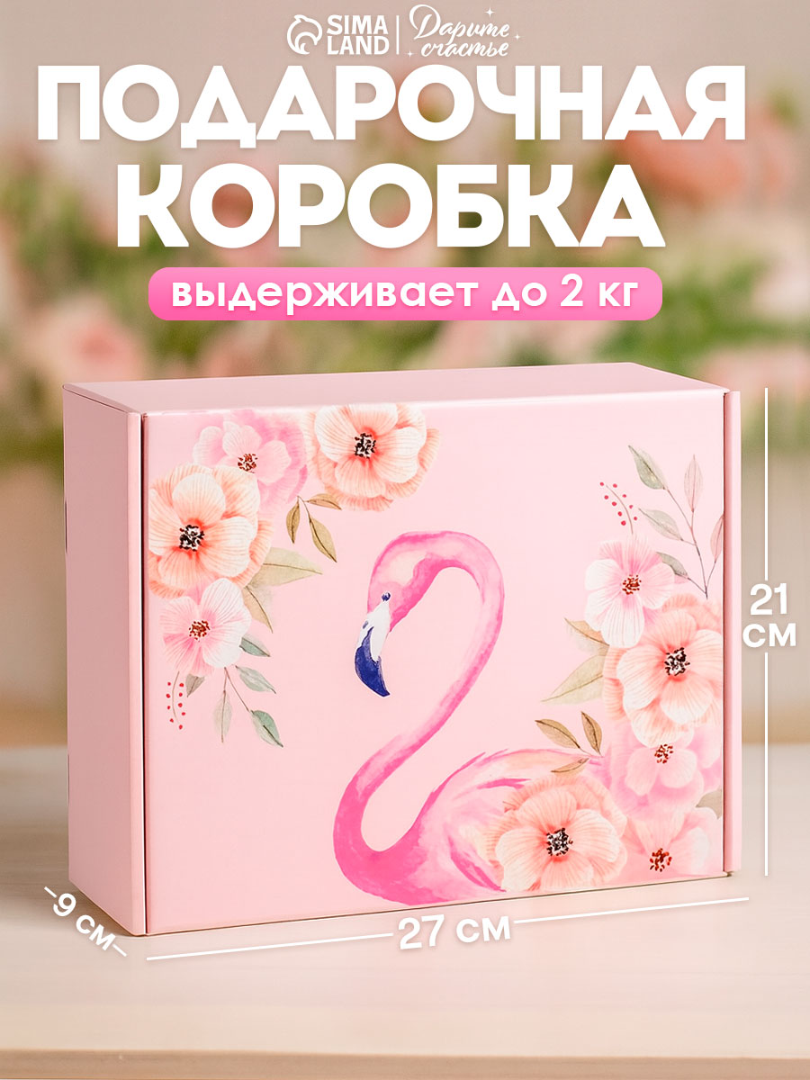 Коробка подарочная упаковка складная картонная "Фламинго", 27 х 21 х 9 см