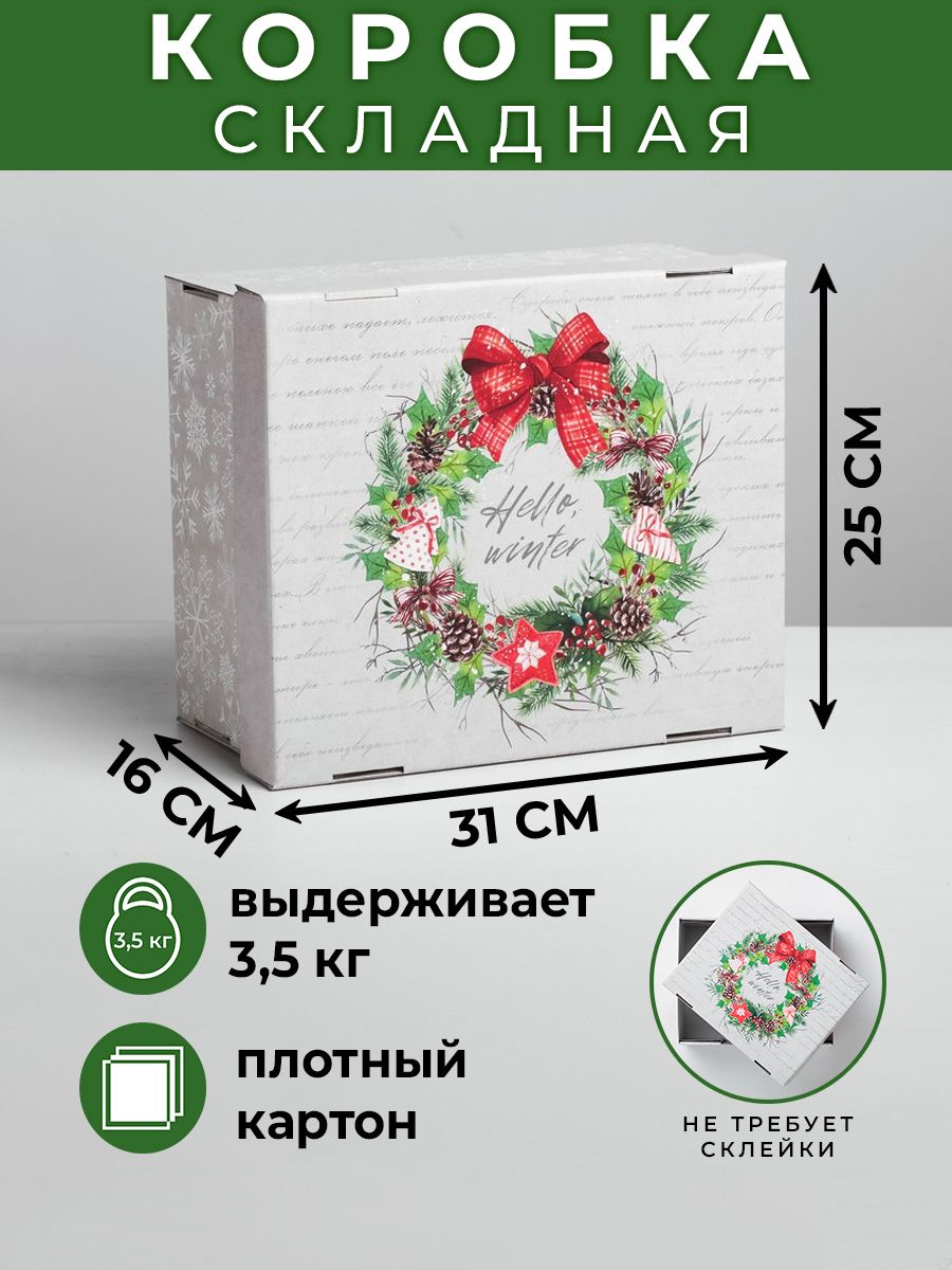 Коробка подарочная новогодняя "Hello, winter", 31,2 х 25,6 х 16,1 см