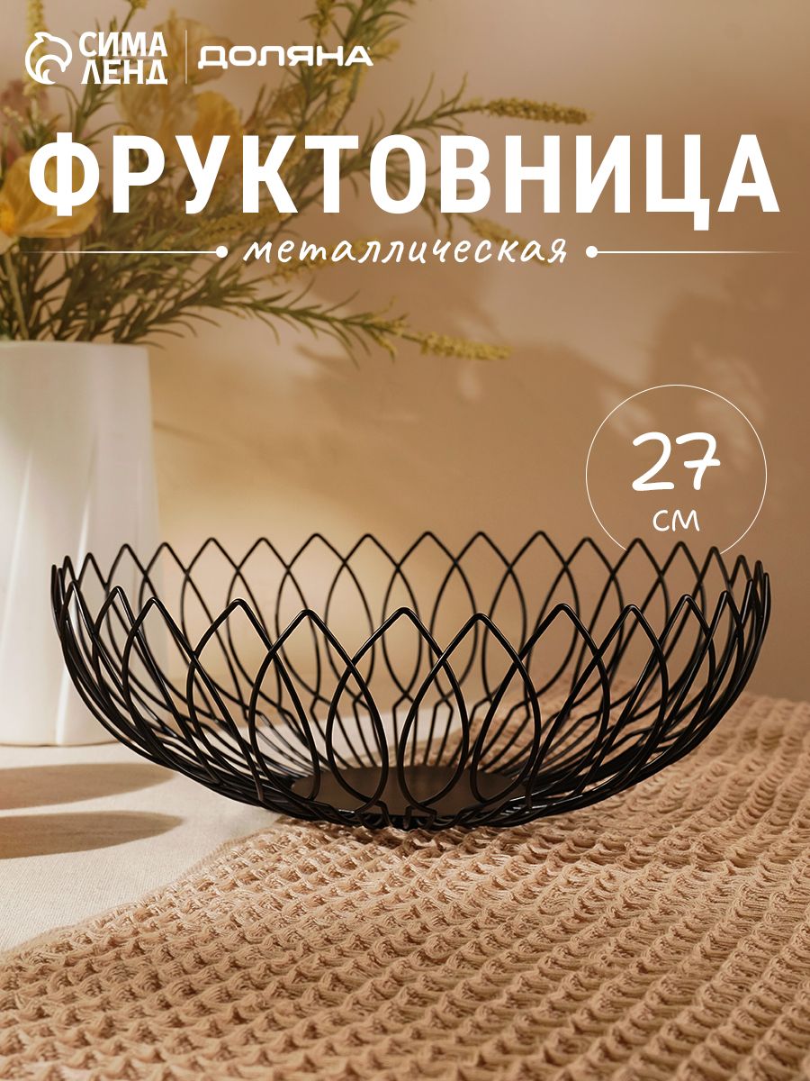 Ваза для фруктов, размер 27х9 см, фруктовница металлическая черная