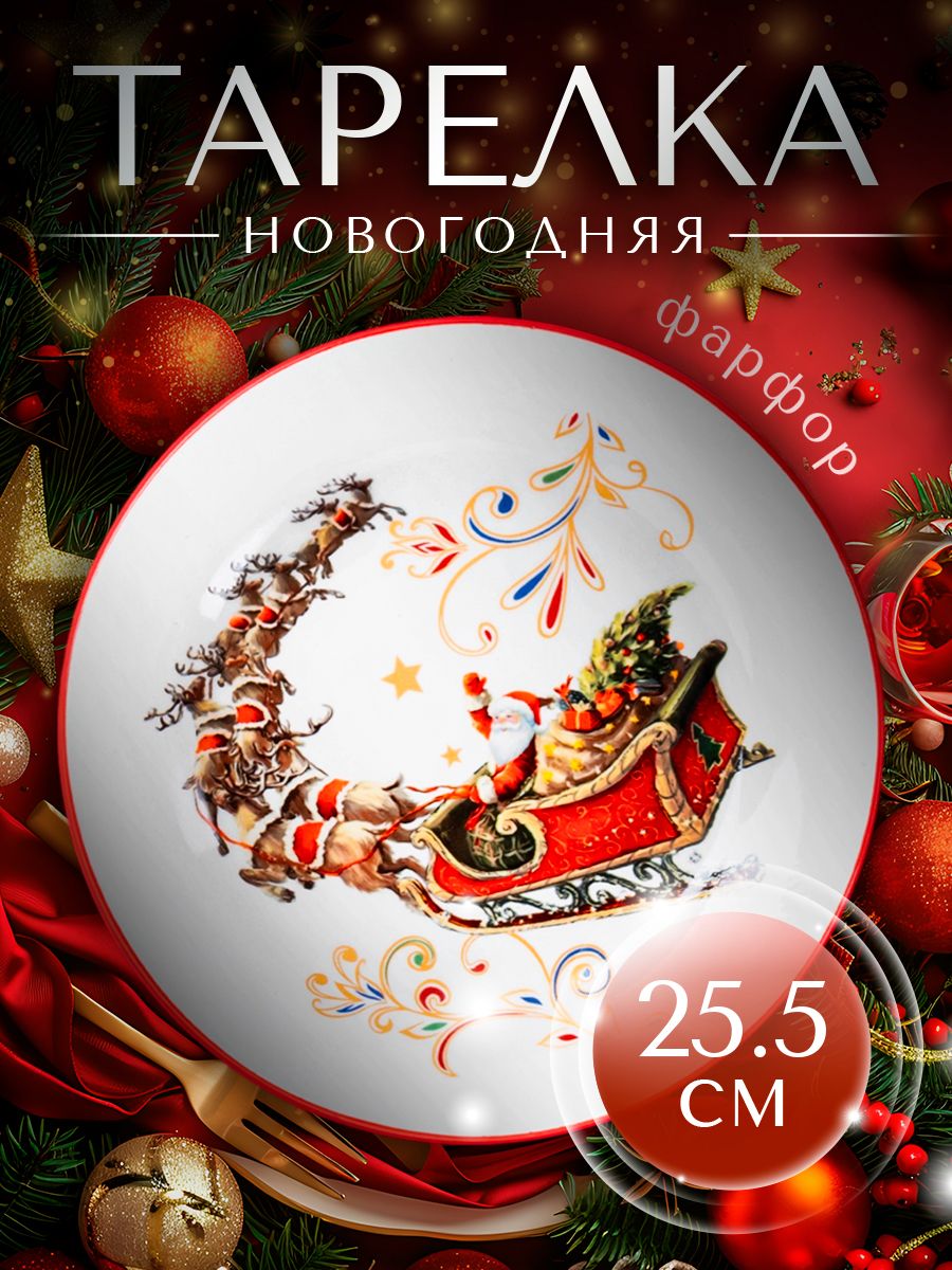 Тарелка новогодняя сервировочная, 25.5 см, фарфоровая, Доляна