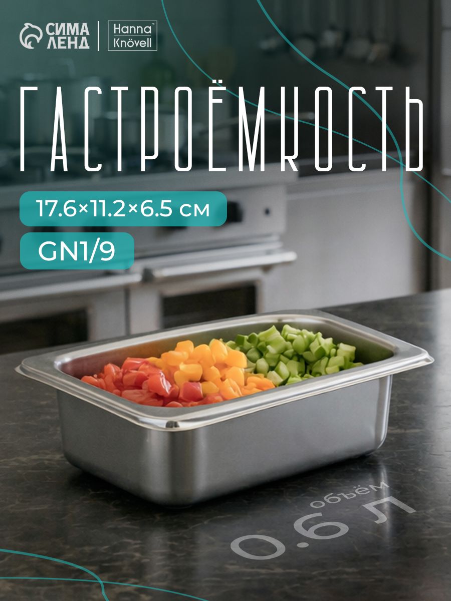 Гастроемкость из нержавеющей стали, GN 1/9, 17,6х11,2х6,5 см
