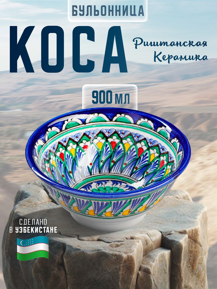 Бульонница коса Риштанская Керамика, объем 900 мл, диаметр 18 см, цвет синий