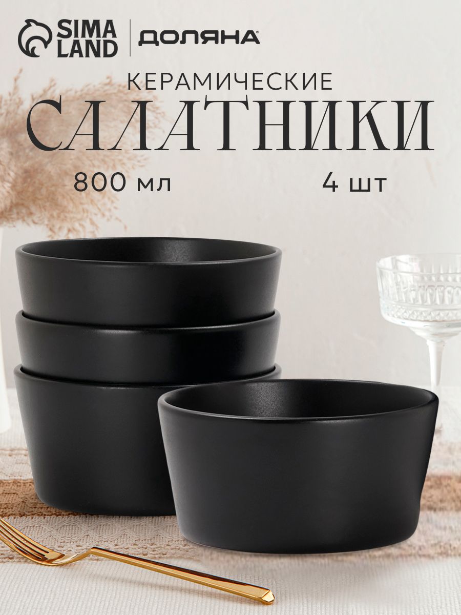 Пиала для супа 4 шт, Доляна "Гранит", тарелки глубокие, 14,5х7 см, цвет черный