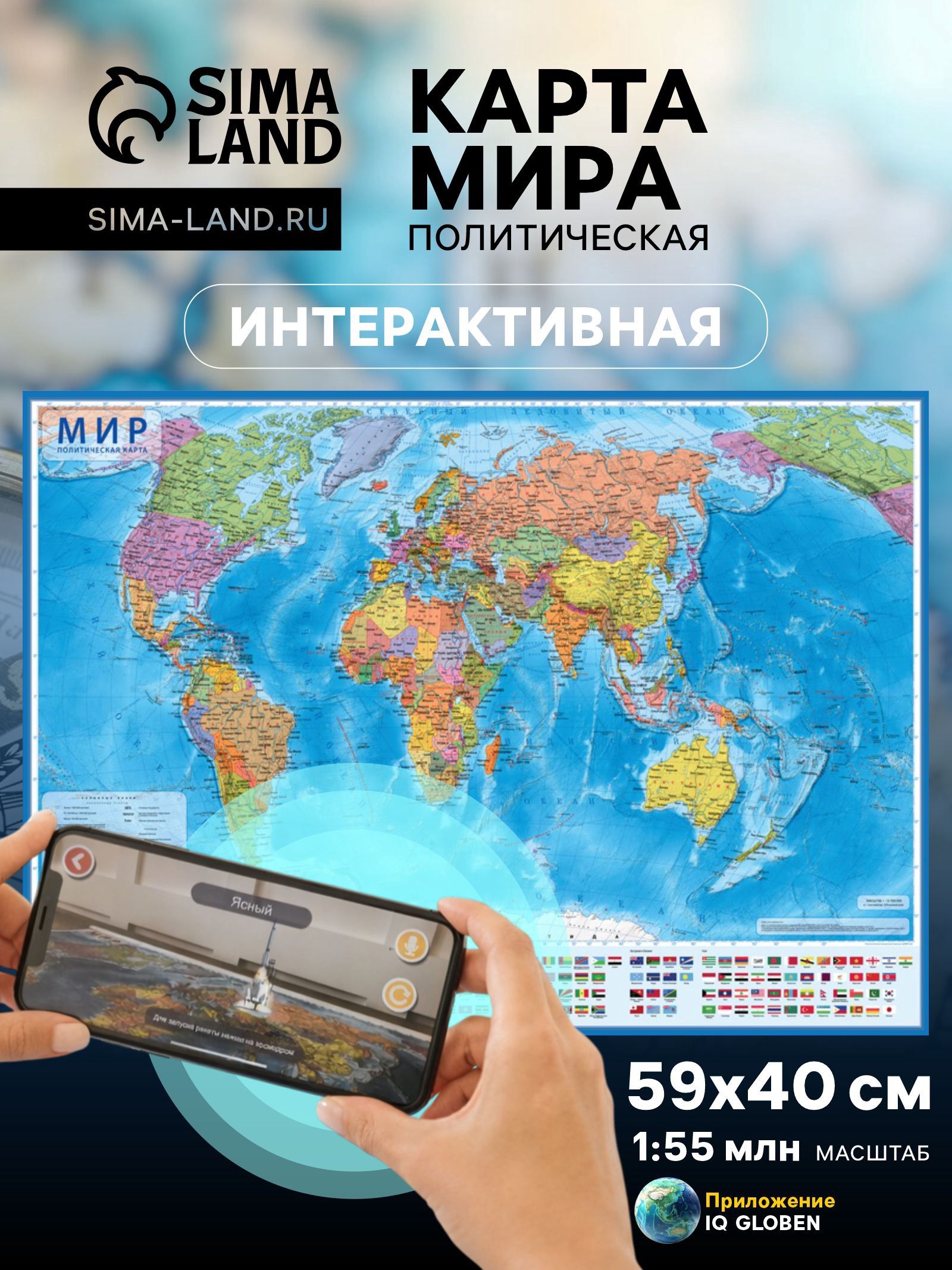 Карта мира настенная политическая географическая 59х40 см, интерактивная