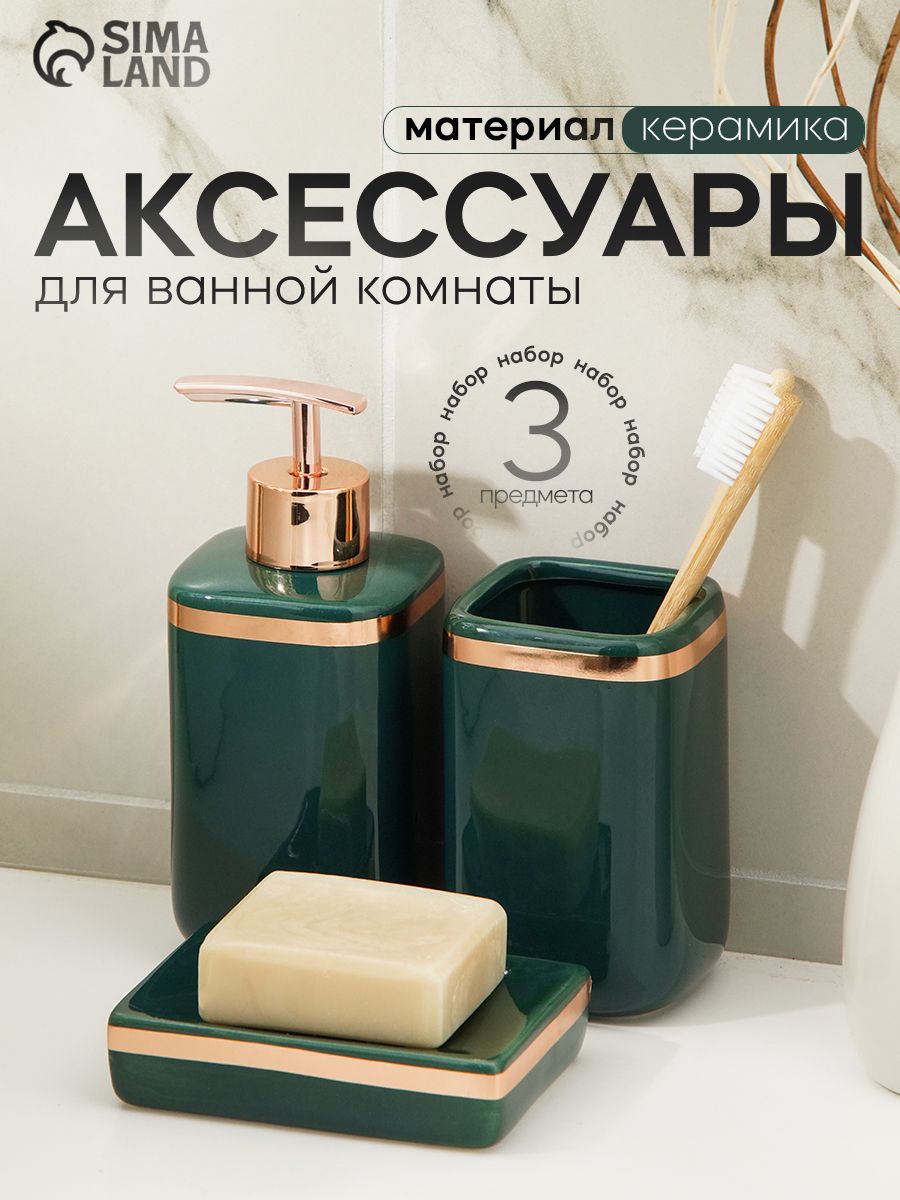 Набор для ванной комнаты аксессуаров Доляна "Богемия", объем 350 мл, 3 предмета, цвет тёмно-зелёный