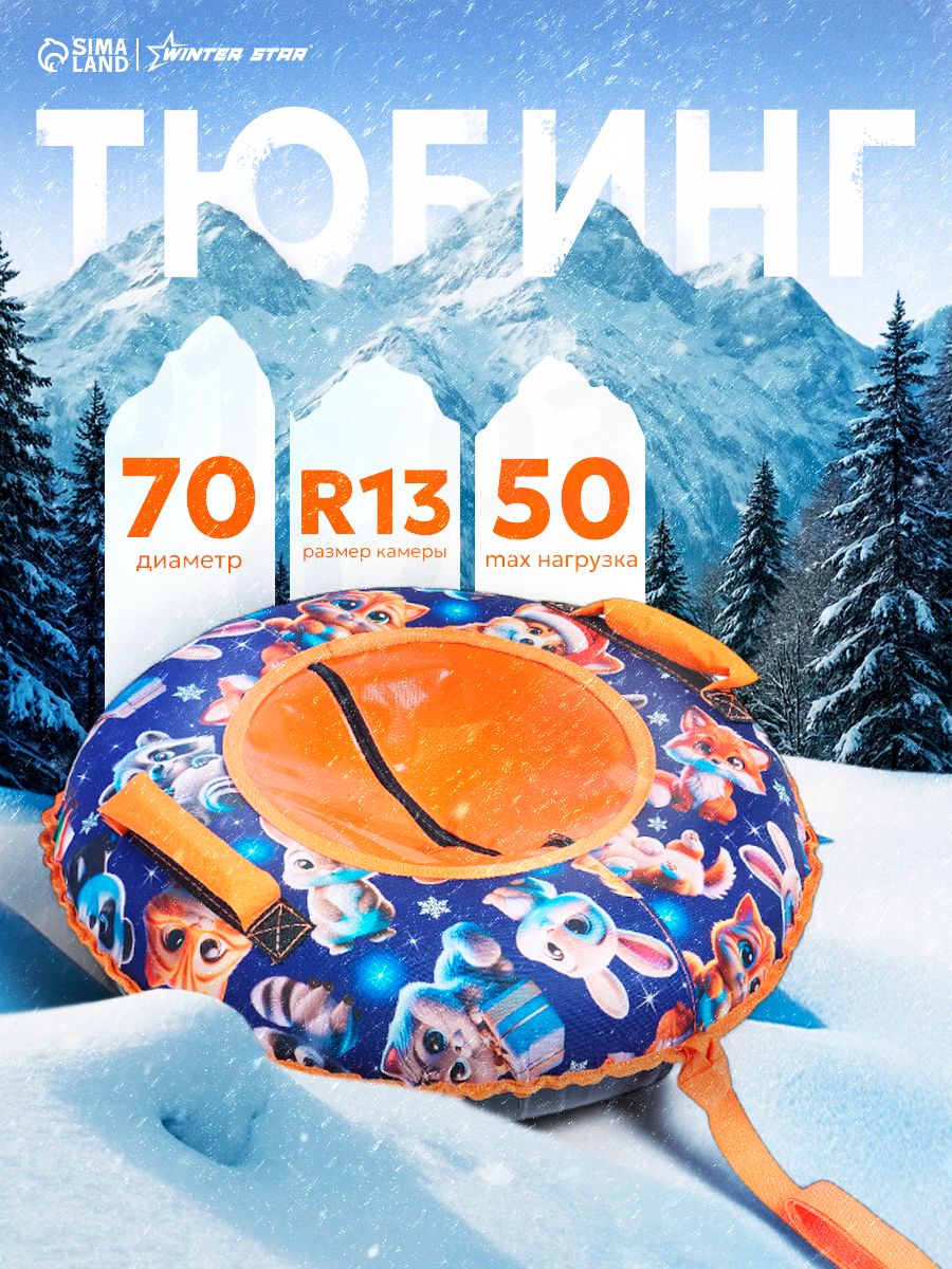 Ватрушка тюбинг, Winter Star "Пушистики", диаметр 70 см, синяя, оранжевая