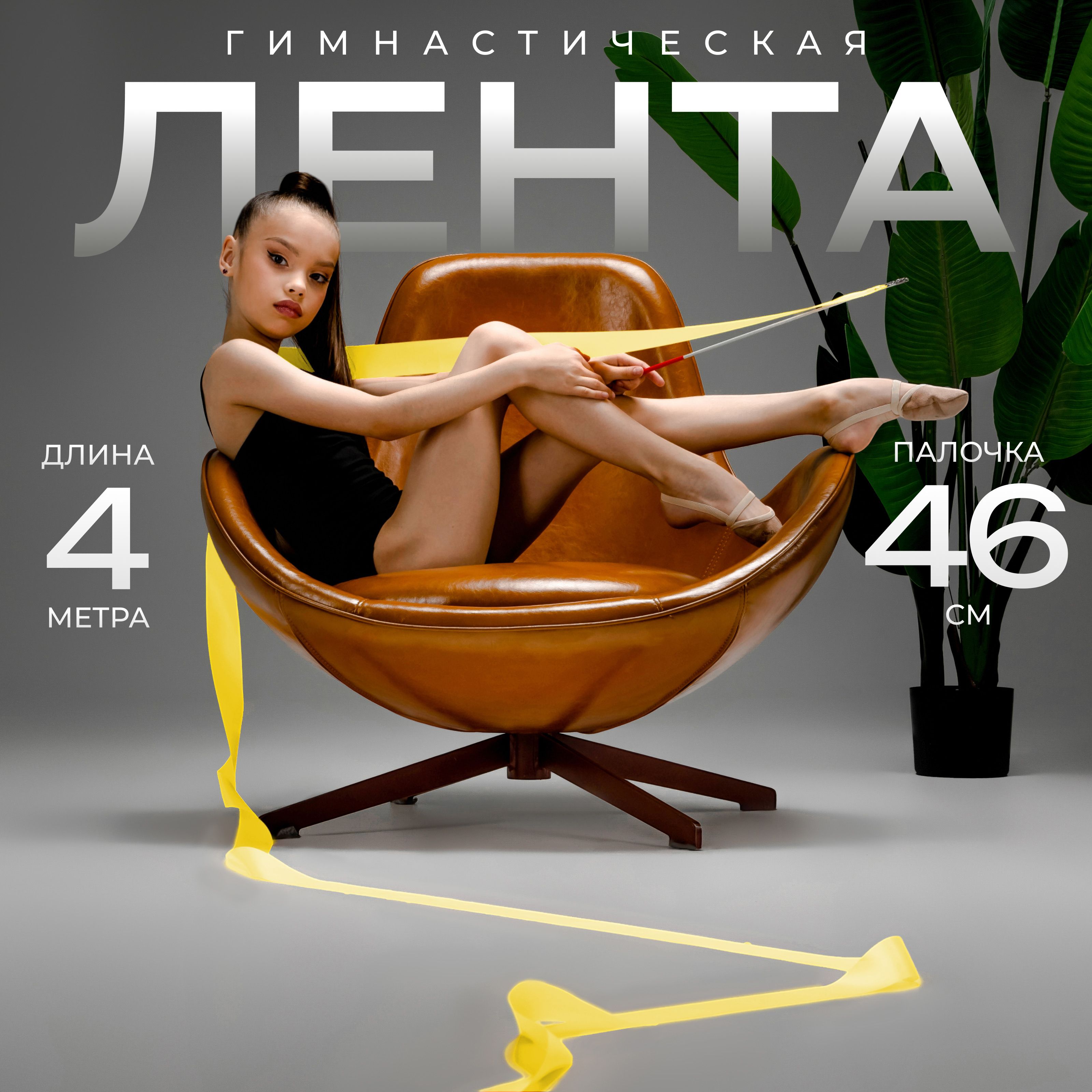 Лента для художественной гимнастики Grace Dance, длина 4 м, цвет желтый