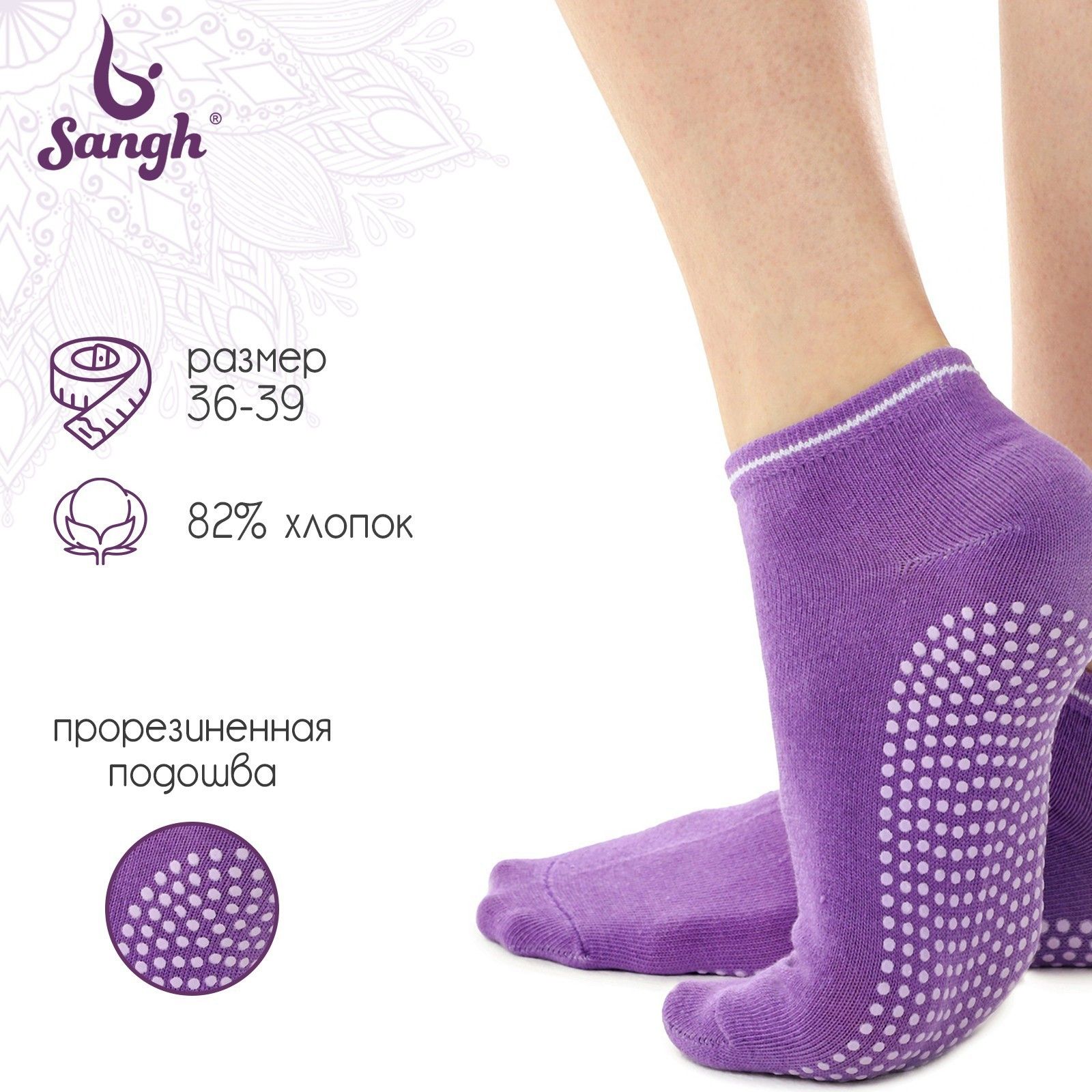 Носки для йоги Sangh, р. 36-39, цвет фиолетовый