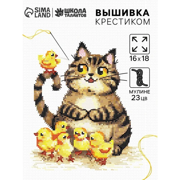 Набор для вышивания крестиком 16х18 см Пушистый котик