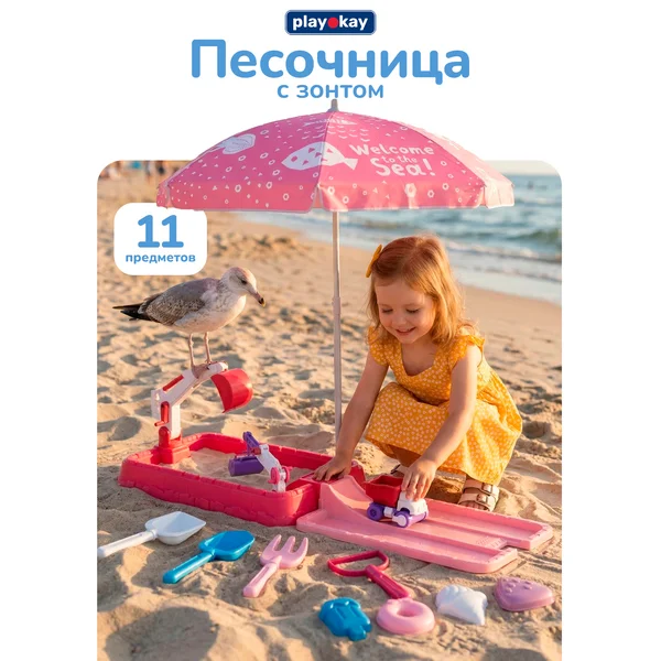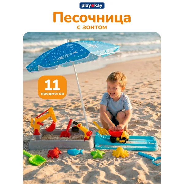 Песочница для улицы и дома детская с зонтиком
